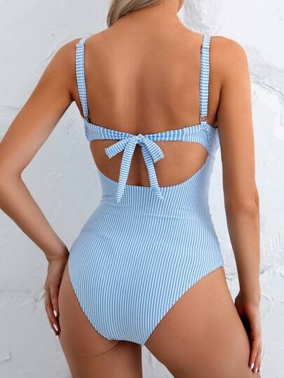 Blue Striped Cut-Out Wrap One-Piece Swimsuit