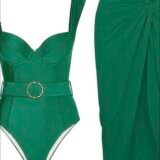 Emerald Belted One-Piece Swimsuit With sarong