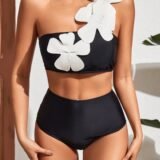 Make a statement with this elegant black one-piece swimsuit, featuring a stunning 3D white floral appliqué. Perfect for luxury vacations, beachside glamour, and poolside elegance.
